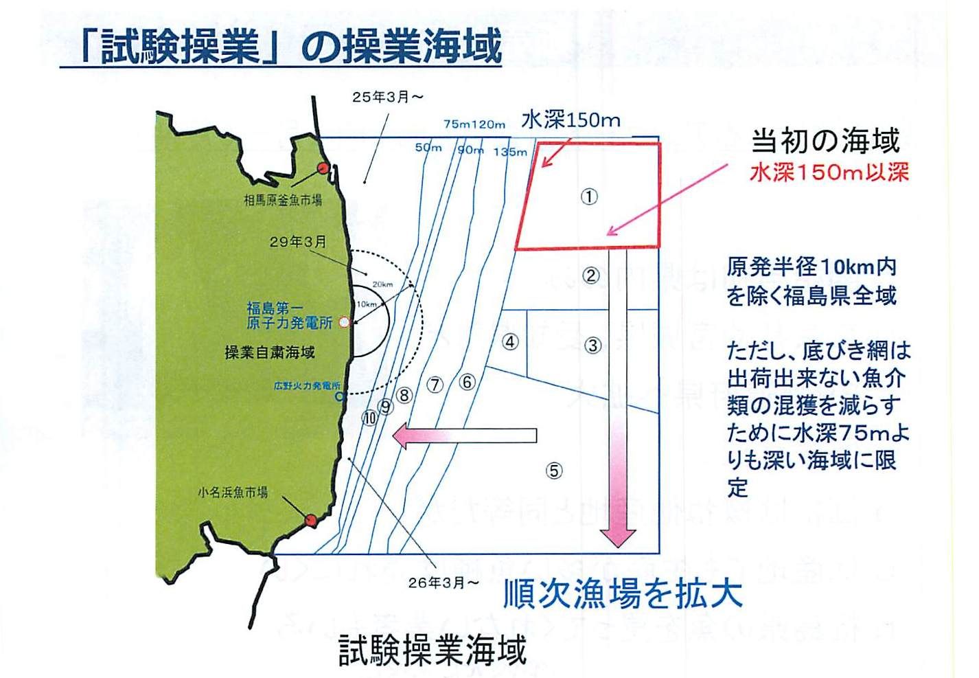 光体群は沿岸の操業自粛海域(原発の半径10km以内)よりも遙かに遠方に見えるが、操業自粛海域は、沖合と港を往来する漁船の通過禁止海域ではない